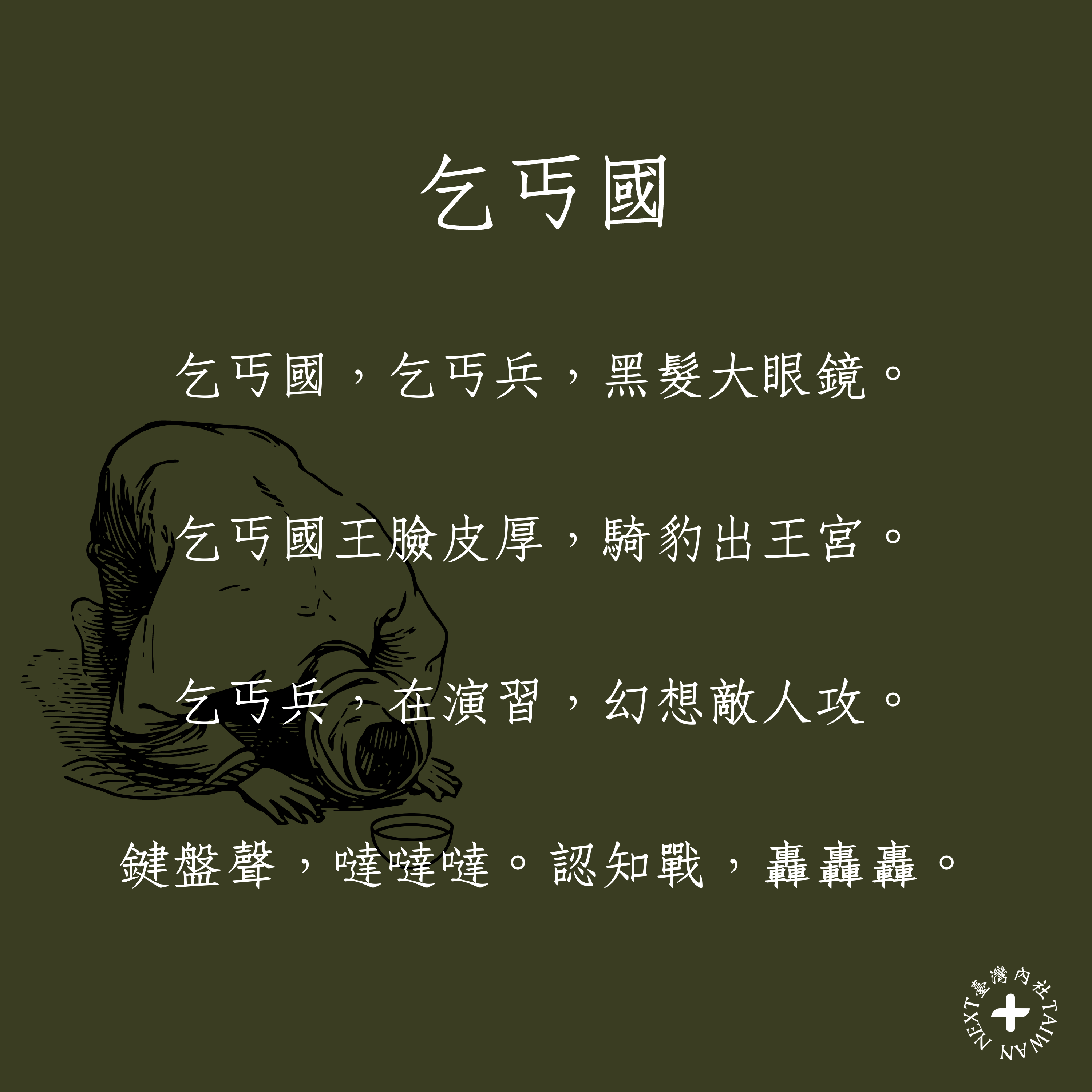 乞丐國,乞丐兵,黑髮大眼鏡。