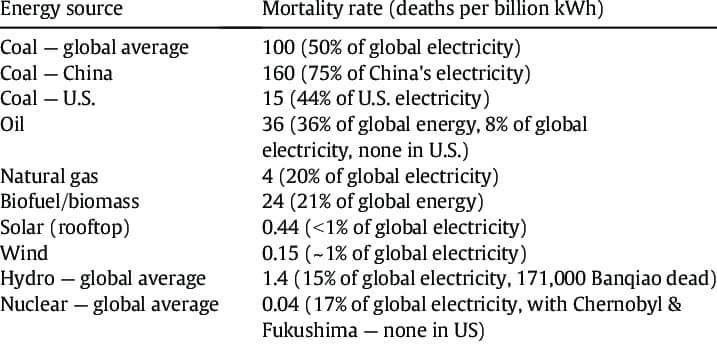The mortality rate of coal-fired power is 2,500 times that of nuclear power.