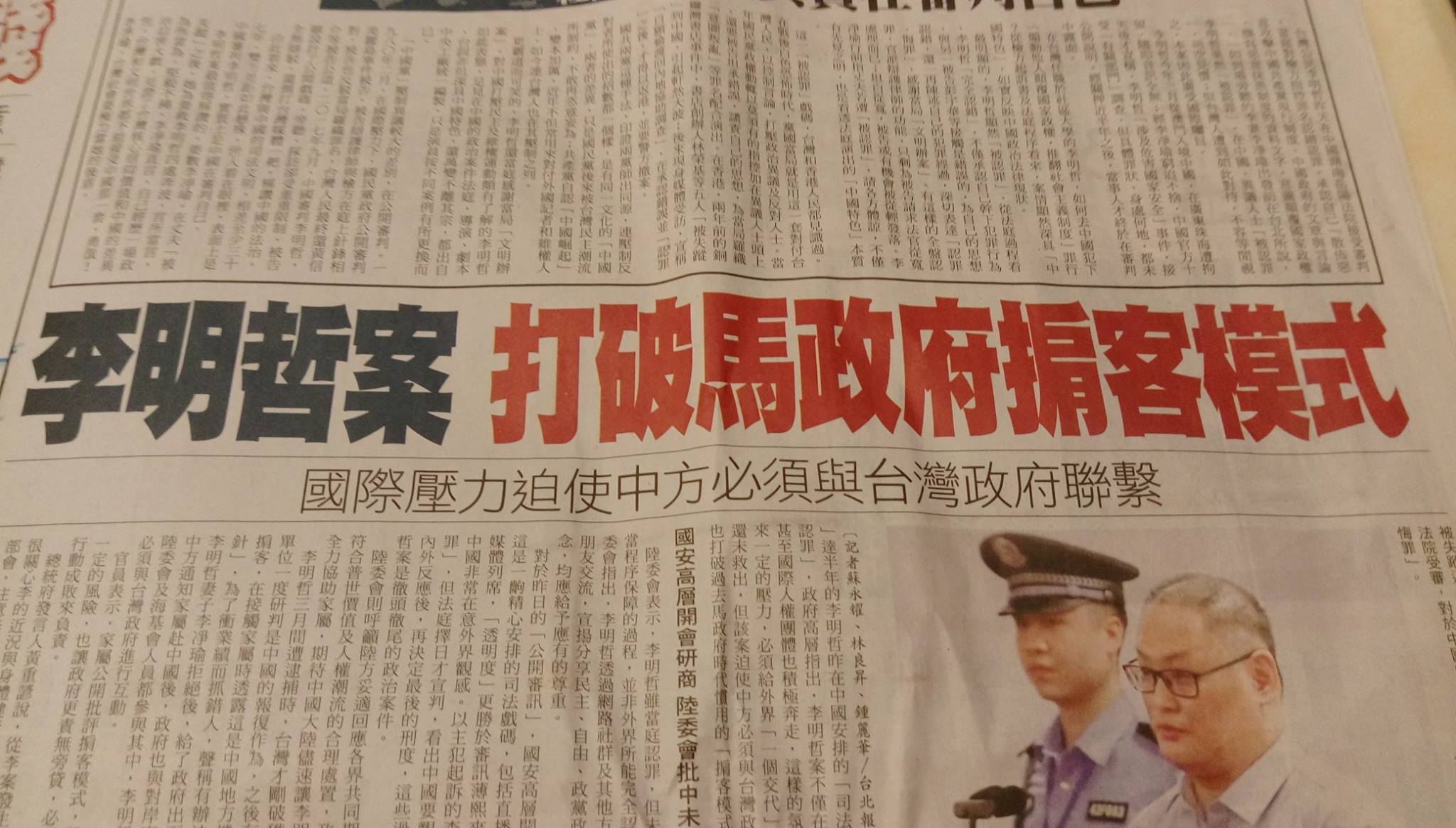 自由時報今天發了一篇報導 「李明哲案 打破馬政府掮客模式」,副標題是 「國際壓力迫使中方必須與臺灣政府聯繫」。如此氣派的標題與副標,卻被網友 W.H. Shih 指出這篇報導,從標題就開始胡言亂扯,是一篇標準自慰的洗腦文章。
